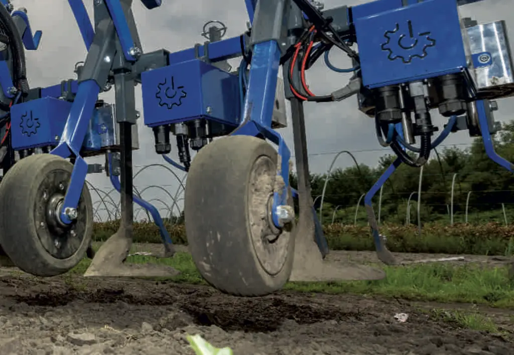 Die Intrarai-Hackmesser werden elektrisch angetrieben, was schnelle und präzise Bewegungen gewährleistet. Die Maschine benötigt lediglich 30 Liter Hydraulikleistung pro Minute und erfordert keine weiteren Zusatzsysteme vom Traktor.